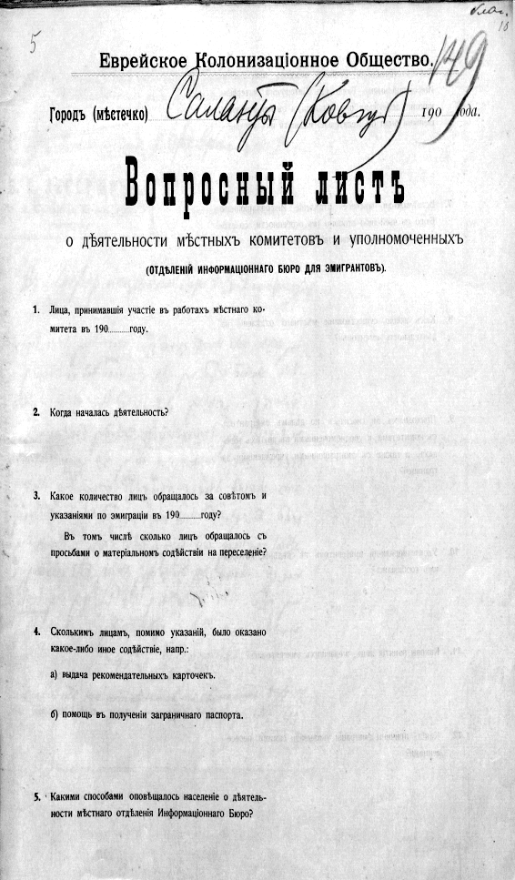 Из материалов Ковенского Информационного бюро для эмигрантов-евреев